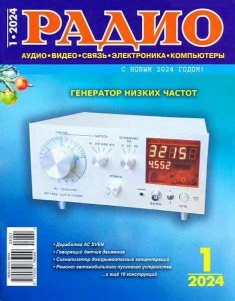 Радио №1 (январь 2024) - Ежемесячный научно-технический журнал для радиолюбителей. Издается с 1924 года. Основные направления публикаций: аудио-видео техника; бытовая электроника; компьютеры; телекоммуникации. За всё время своего существования воспитал не одно поколение увлеченных радиолюбителей. Издание по праву считается самым уважаемым и авторитетным в области радиоэлектроники.Издательство: ЗАО "Журнал "Радио"