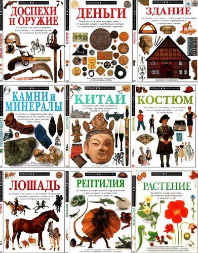Серия - 33 познавательных иллюстрированных энциклопедий от транснационального издательства, созданного в 1974 году, в сотрудничестве с Британским музеем. Серия «Eyewitness ® Guide» была разработана издательством «Дорлинг Киндерсли Лимитед» совместно с издательством «Галлимар».Год: 1995-2001