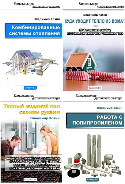 Эти 4 книги помогут сэкономить массу времени и денег. Вы найдете массу полезной информации: как создать водяной теплый пол, как работать с пропиленом, как сделать систему отопления. Как влияют климатические факторы на тепло в доме; Что такое тепловые потери; Что такое пароизоляция и мостики холода; Как влияют на тепло в доме окна и двери; Какой выбрать утеплитель. Прочитав данные книги вы сможете шаг за шагом освоить нехитрые правила и способы работы.